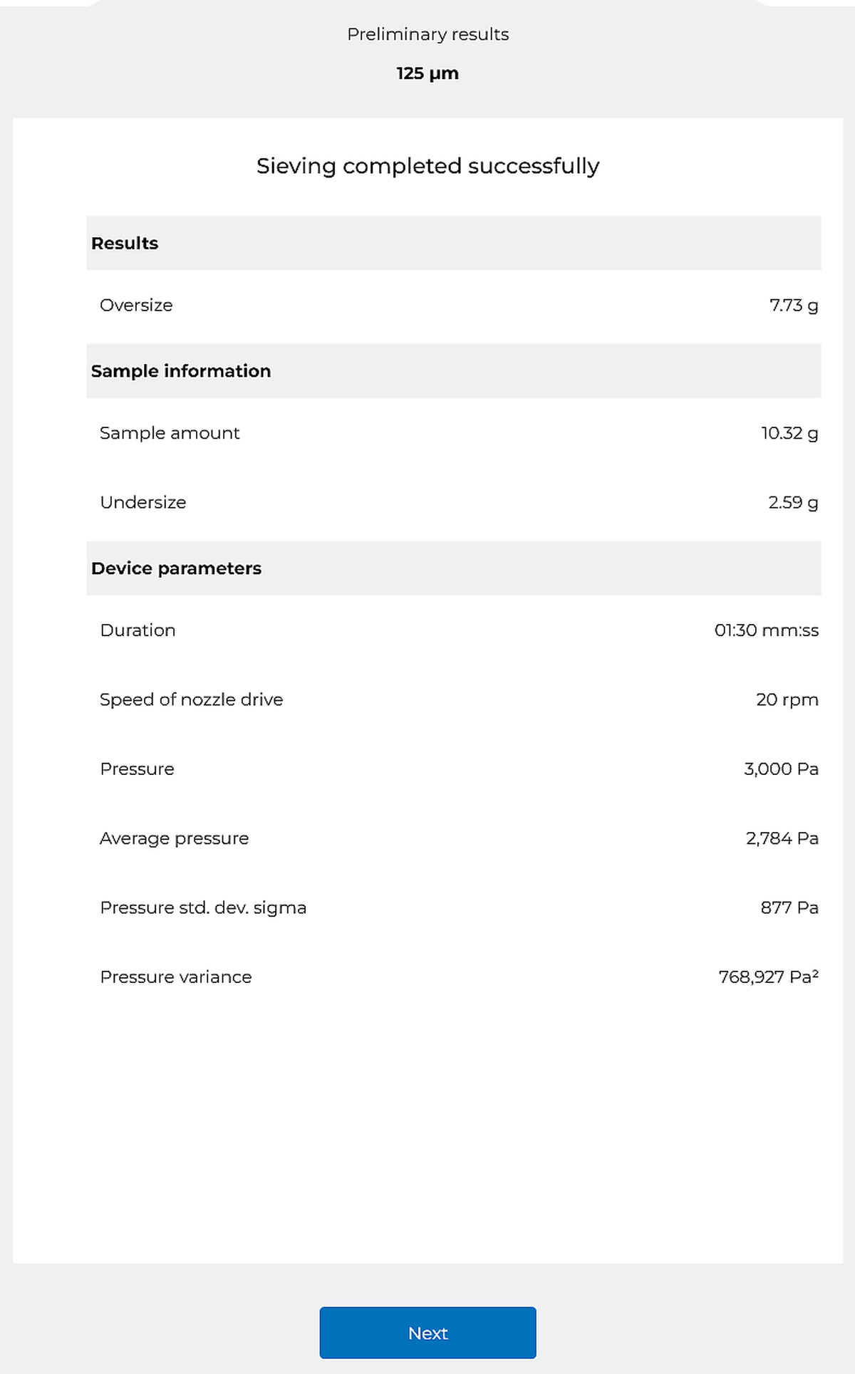 The internal wizard guides the user step by step through the entire process. Every process step is clearly explained and ensures reliable sieve processes. Human errors are reduced to a minimum.